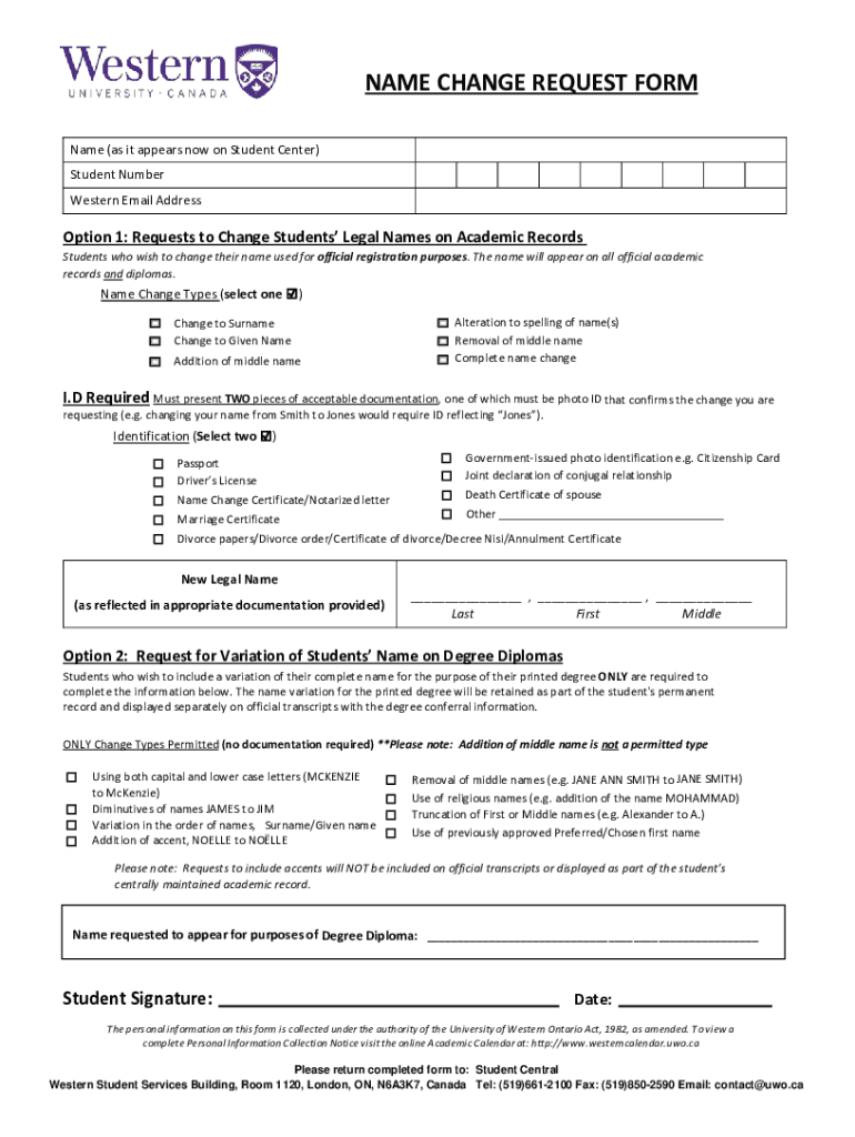 Get the free NAME CHANGE REQUEST FORM - Western University
