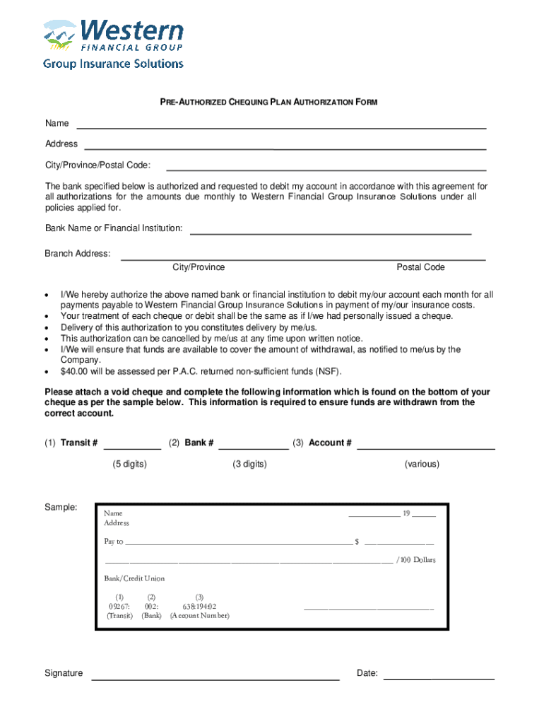 PREAUTHORIZED CHEATING PLAN AUTHORIZATION FORM Name Address City/Province/Postal Code: The bank specified below is authorized and requested to debit my account in accordance with this agreement for