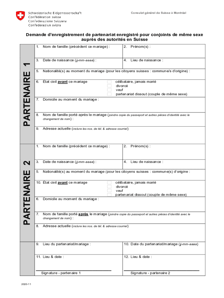 Consult gnarl de Swiss MontralPARTENAIRE 1Demande denregistrement de partenariat unregister pour conjoint de Mme see APRS DES autofits en Swiss 1. Not DE Camille (prudent CE marriage) :2. Prom(s)