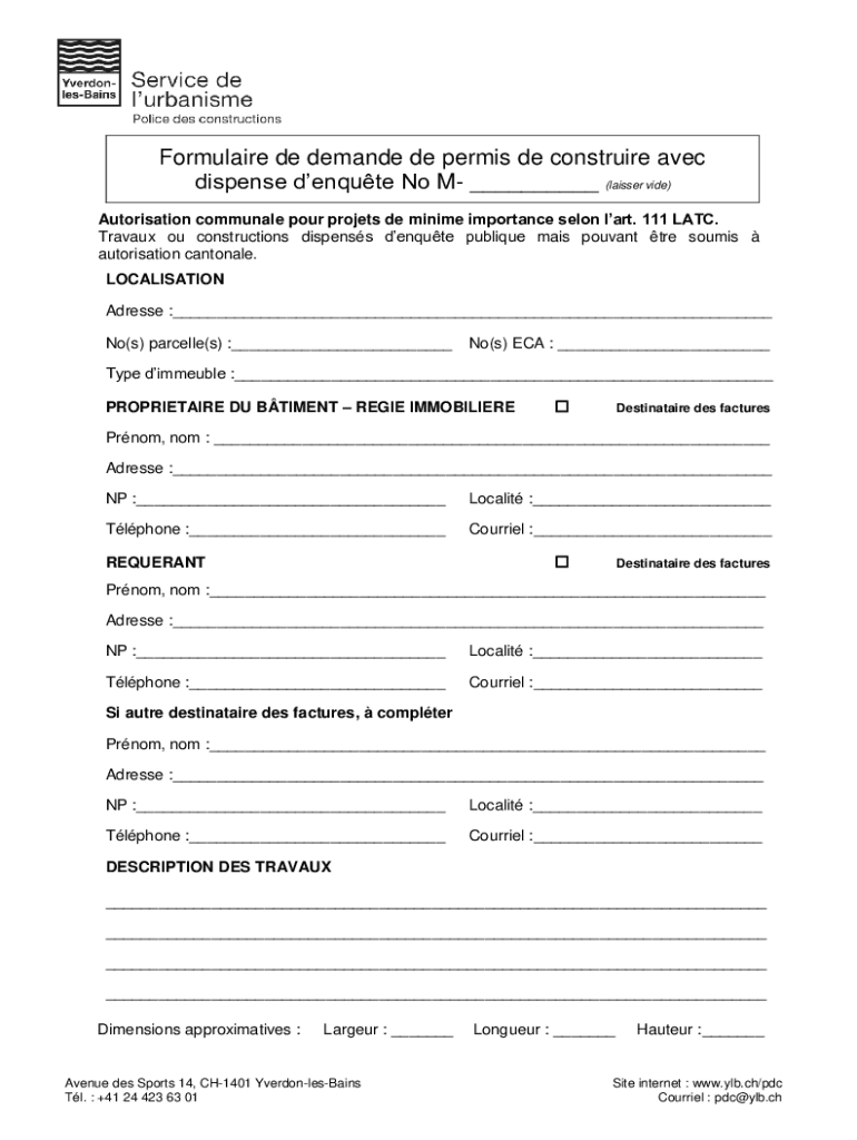 Formula ire DE demand DE permit DE construe Alec dispense denote No M (laser vide) Authorization communal pour projects DE minima importance salon part. 111 LATE. Travail of constructions dispense