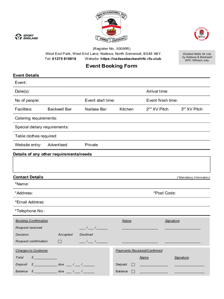 Anyone who wishes to book an event at nampampb rfc can use the event booking service.