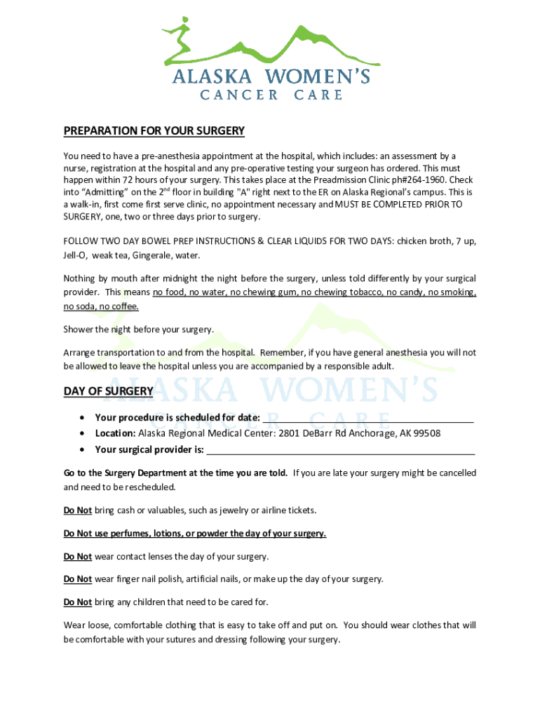 PREPARATION FOR YOUR SURGERY You need to have an anesthesia appointment at the hospital, which includes: an assessment by a nurse, registration at the hospital and any preoperative testing your surgeon