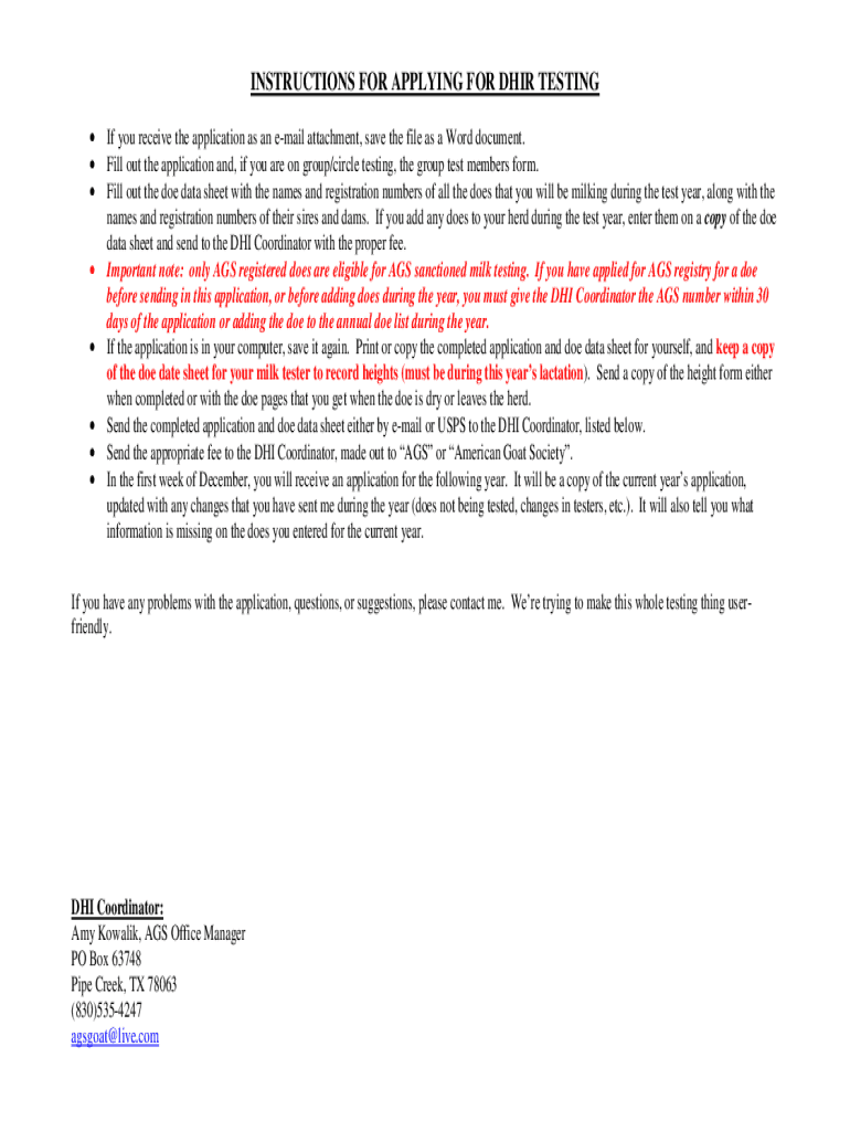 INSTRUCTIONS FOR APPLYING FOR DIR TESTING If you receive the application as an email attachment, save the file as a Word document. Fill out the application and, if you are on group/circle testing,