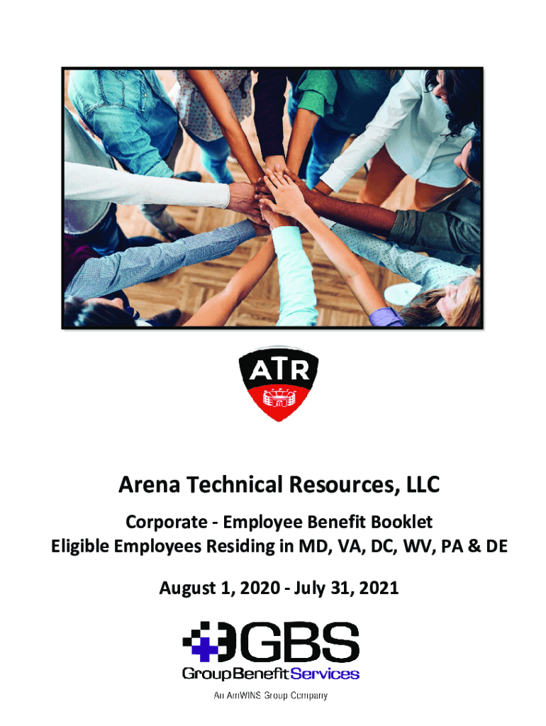 Arena Technical Resources, LLC Corporate Employee Benefit Booklet Eligible Employees Residing in MD, VA, DC, WV, PA & DE August 1, 2020, July 31, 2021Welcome to Your Resources Dear Employee, We appreciate