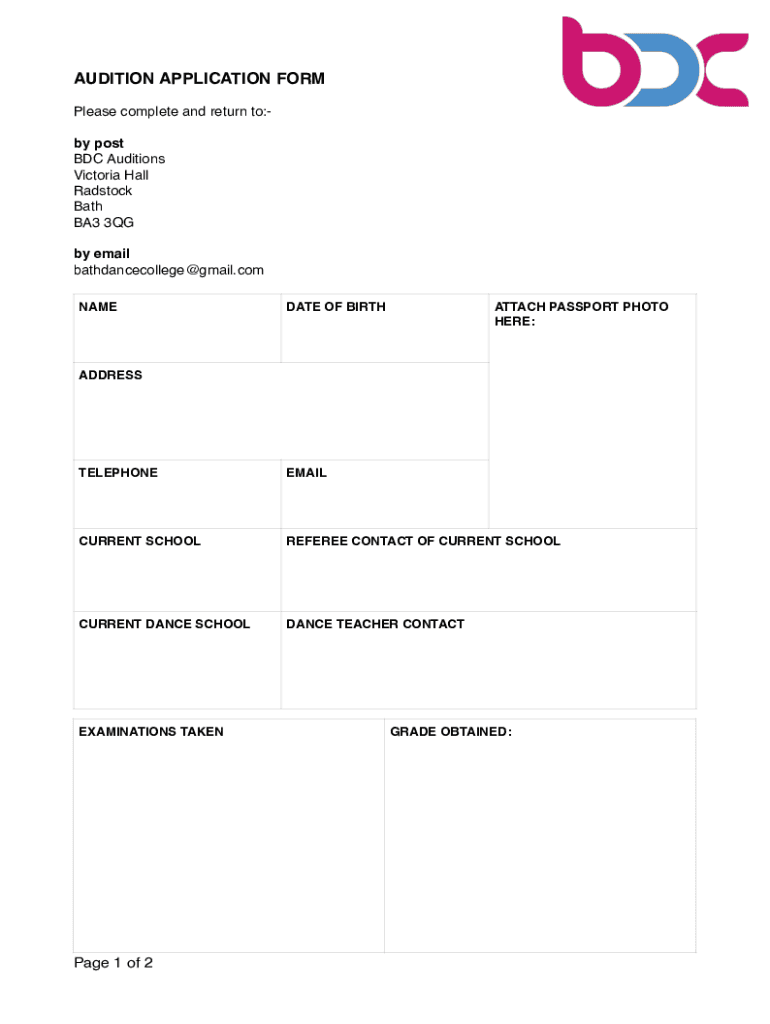 Bdc Audition Application Form is not the form you're looking for?Search for another form here.
