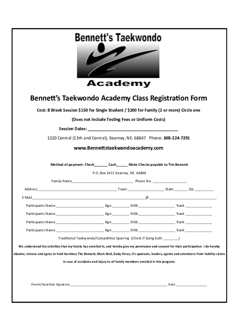 Get the free New Student Registration Form - Bennett's Taekwondo Academy