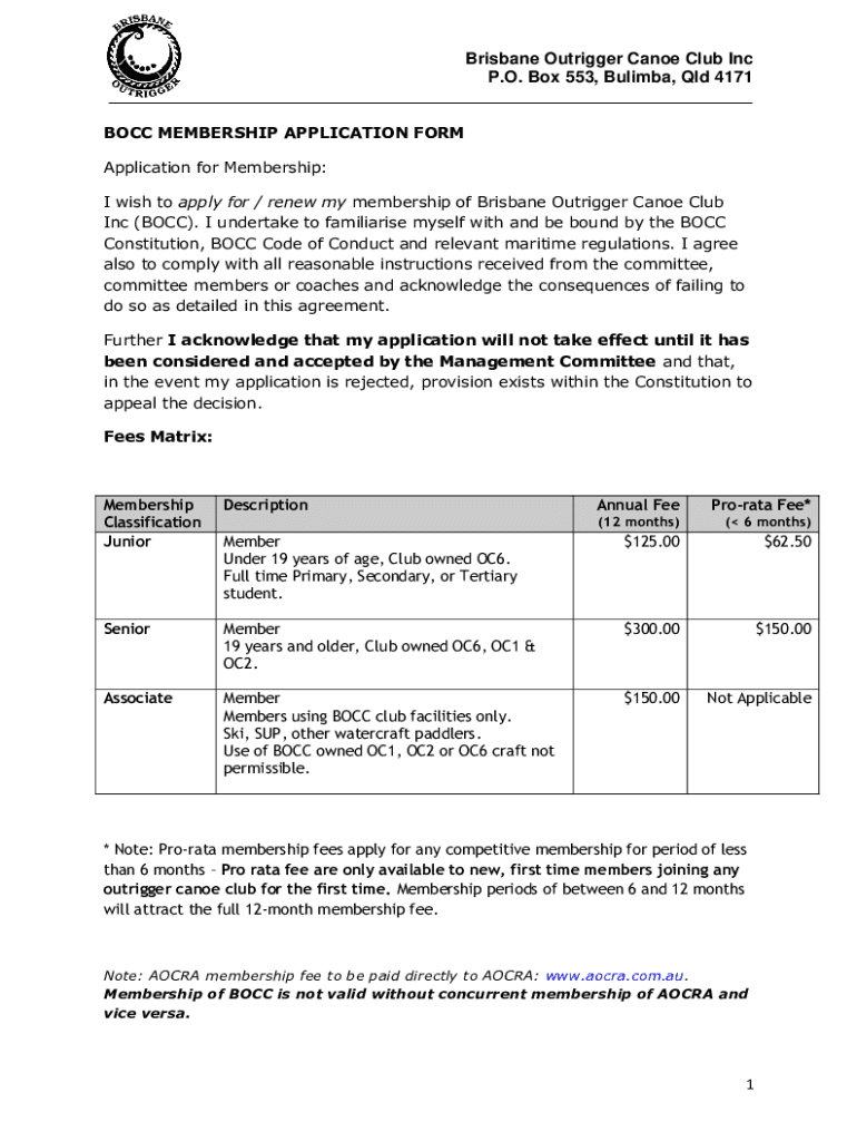 Get the free Brisbane Outrigger Canoe Club Inc P.O. Box 553, Bulimba, Qld 4171