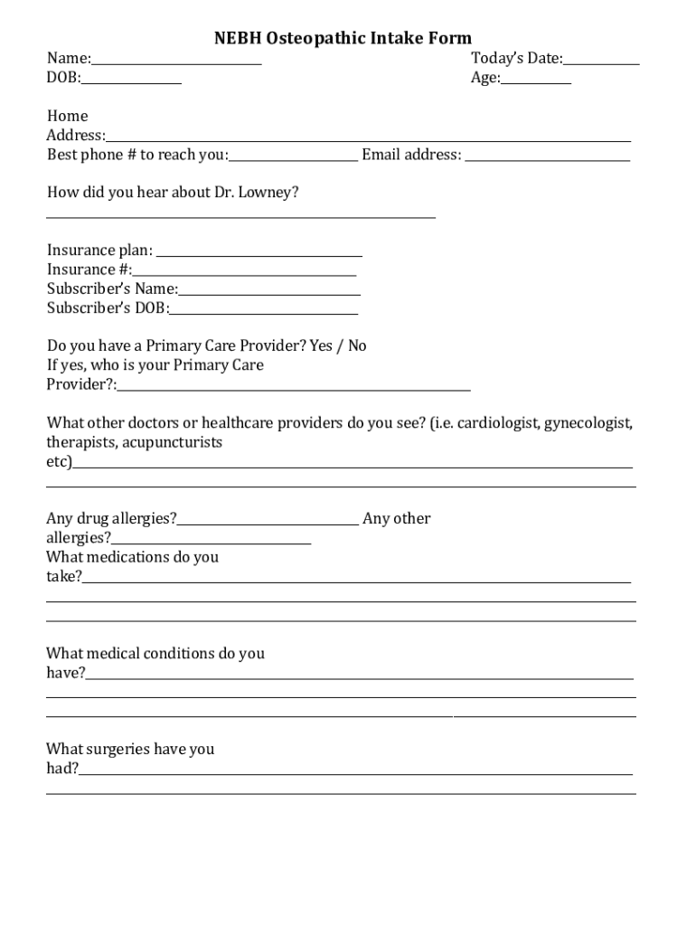 How to fill out nebh osteopathic intake formdocx