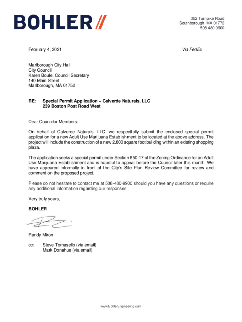 352 Turnpike Road South borough, MA 01772 508.480.9900February 4, 2021Via FedEx Marlborough City Hall City Council Karen Boyle, Council Secretary 140 Main Street Marlborough, MA 01752RE:Special Permit