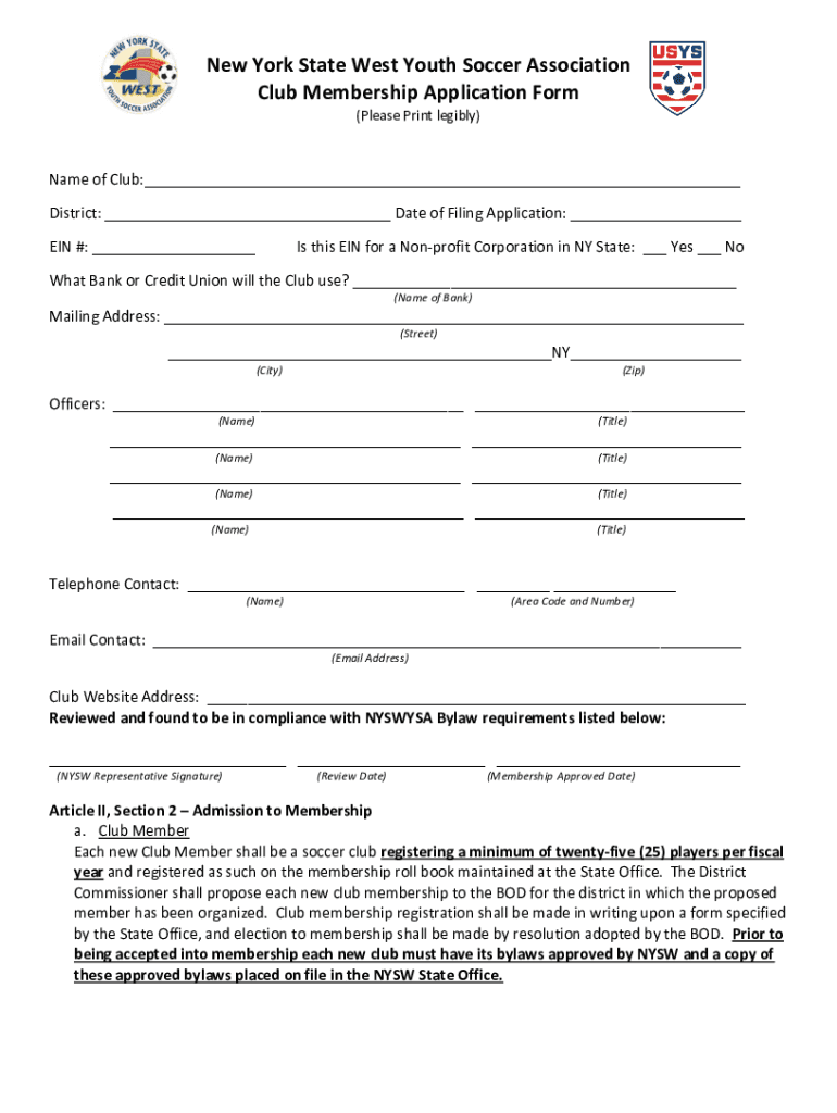Get the free New York State West Youth Soccer Association Club Membership ...