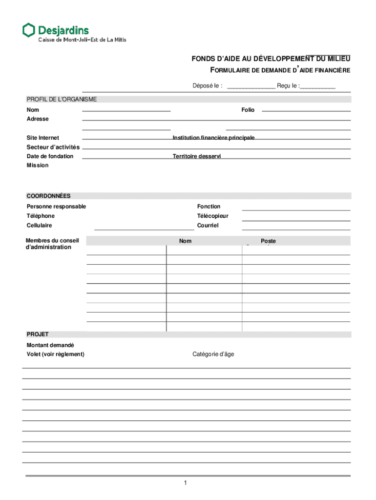 Obtenir le gratuit FONDS D'AIDE AU DVELOPPEMENT DU MILIEU - Desjardins.com