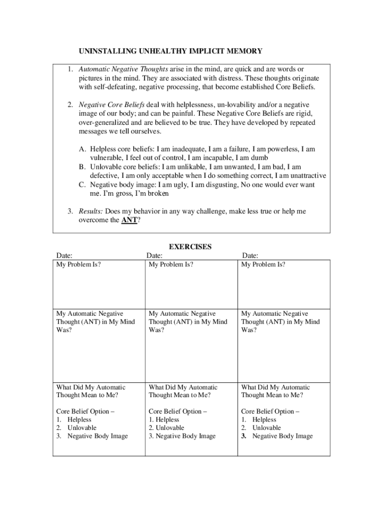 Edit your automatic negative thinking 5 form online