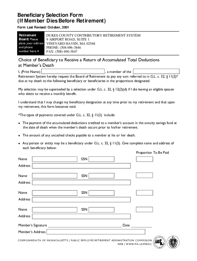 Get the free Beneficiary Selection Form - Methuen