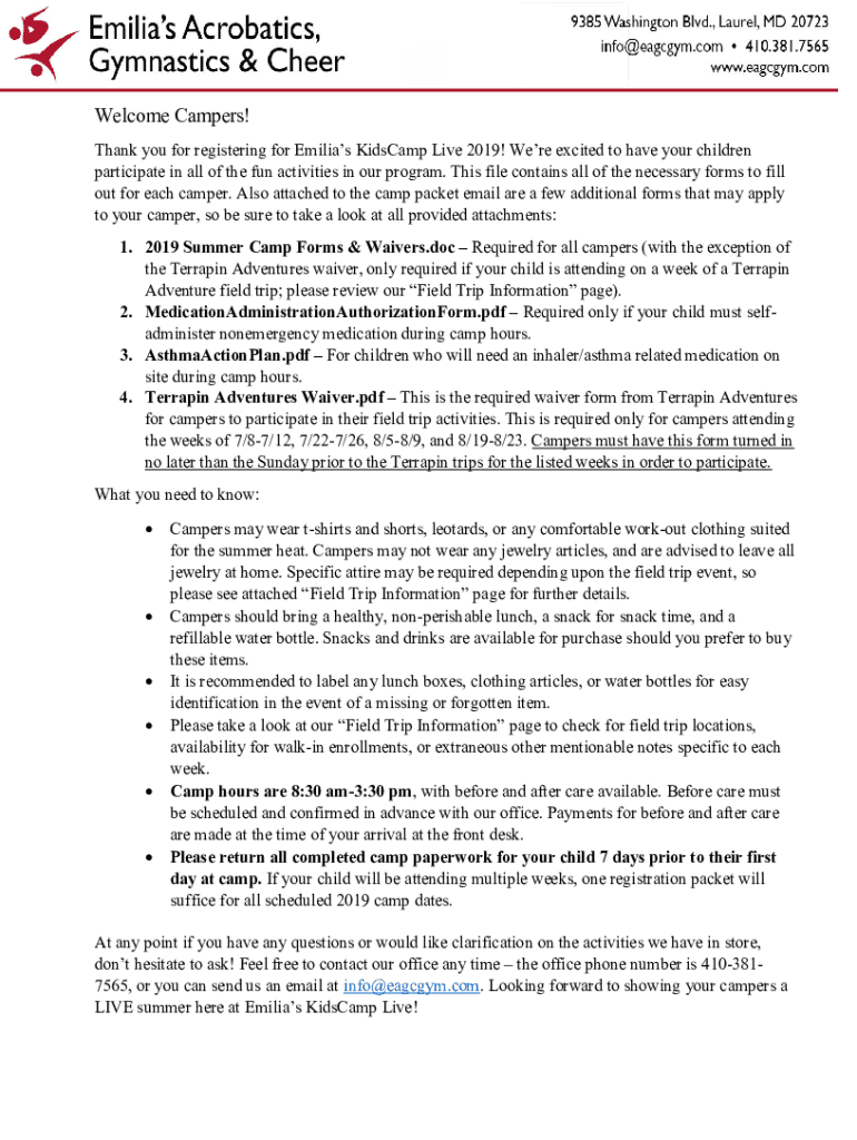 Get the free P. 2019 Summer Camp Forms & Waivers.docx