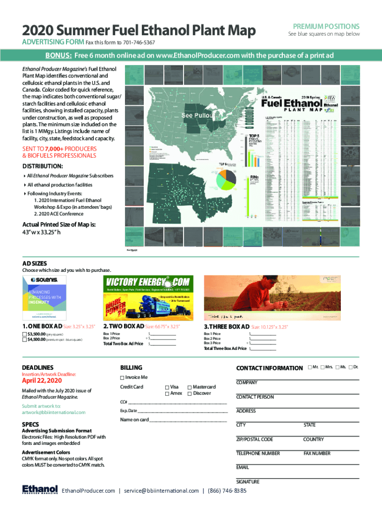 ADVERTISING FORM Fax this form to 7017465367PREMIUM Positions blue squares on map belowBONUS: Free 6 month online ad on www.EthanolProducer.com with the purchase