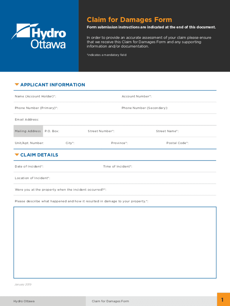 Claim for Damages Form submission instructions are indicated at the end of this document.