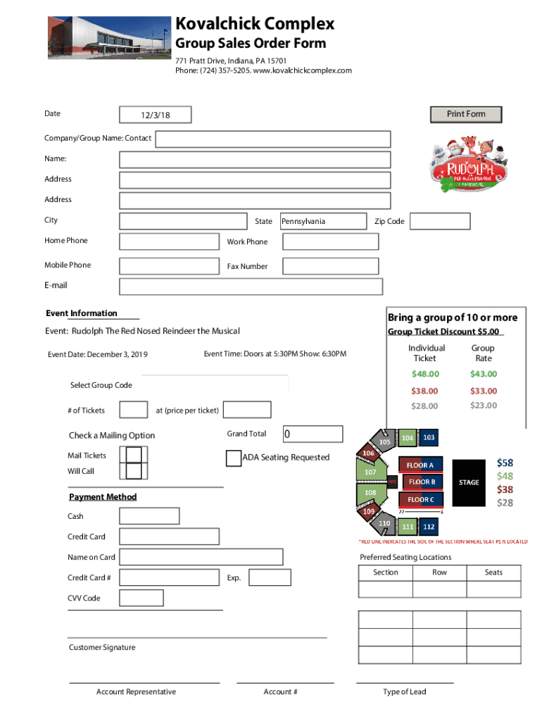 Phone: (724) 3575205. www.kovalchickcomplex.comDatePrint Form12/3/18Company/Group Name: Contact