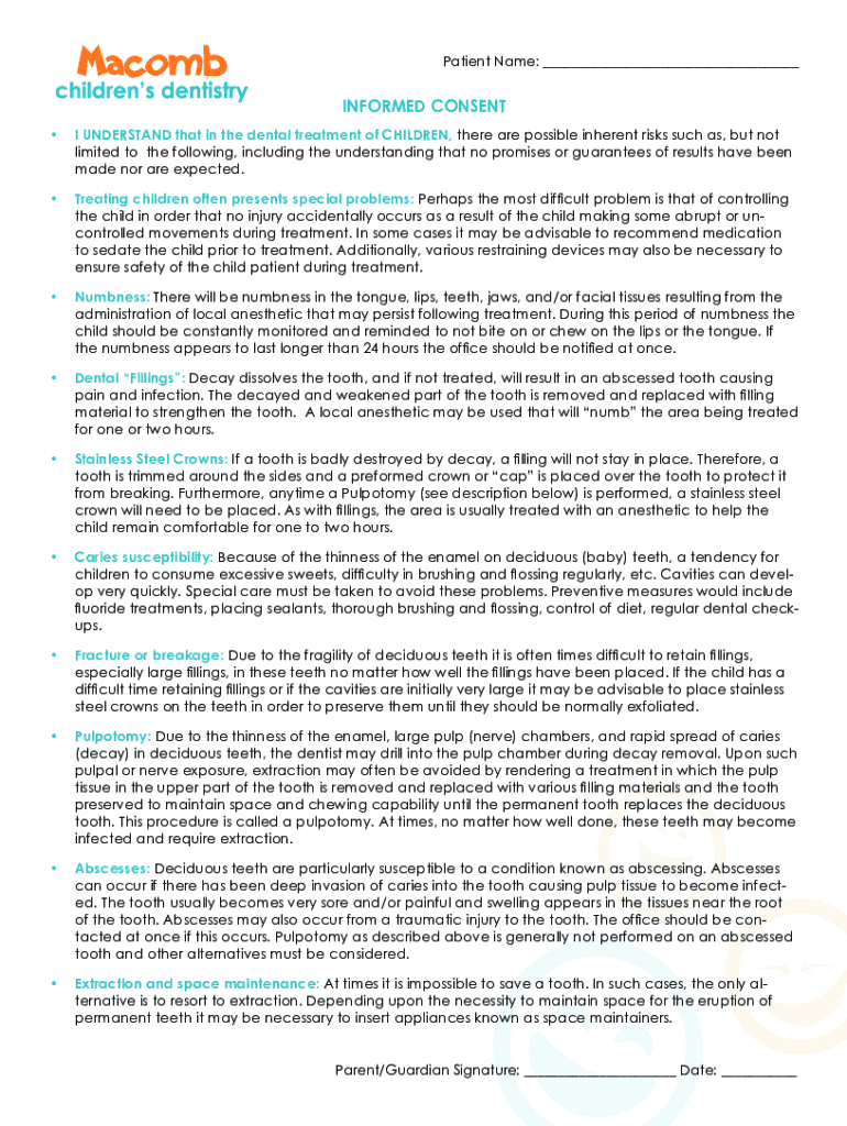 Get the free PDF Informed Consent Form - Marlborough Village Pediatric Dental Care