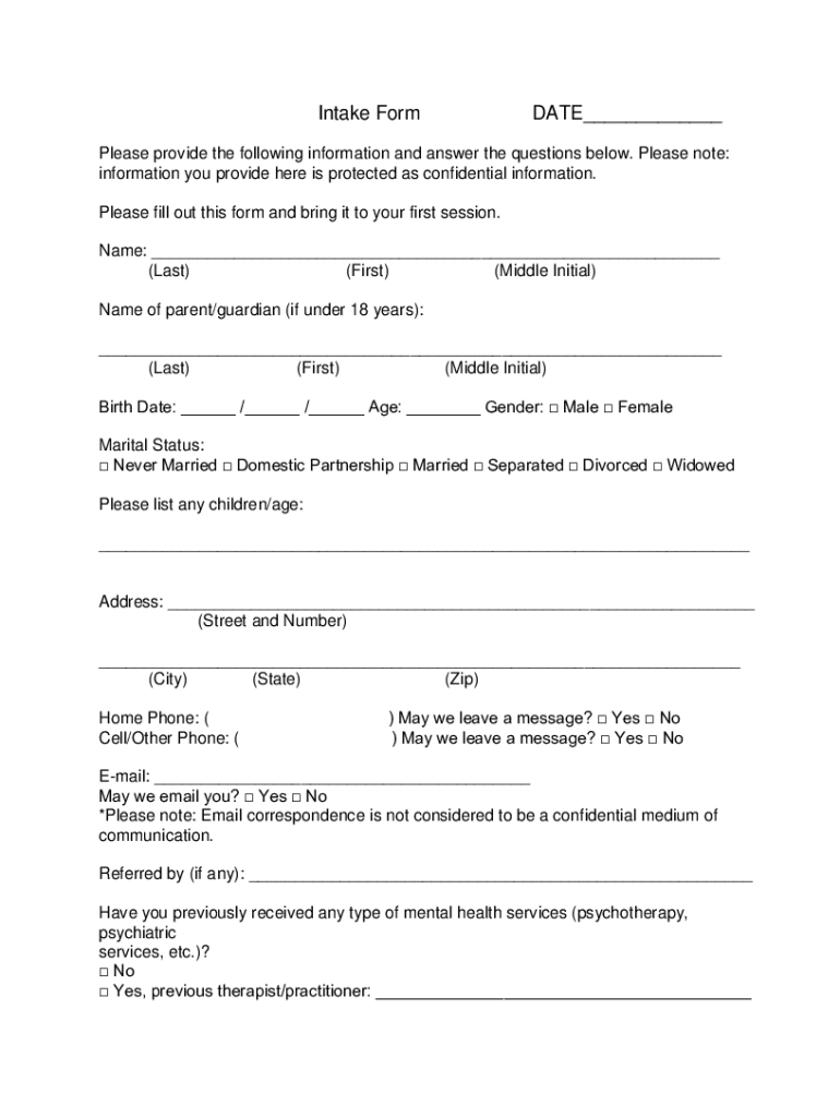 Intake Format Please provide the following information and answer the questions below. Please note: information you provide here is protected as confidential information. Please fill out this form