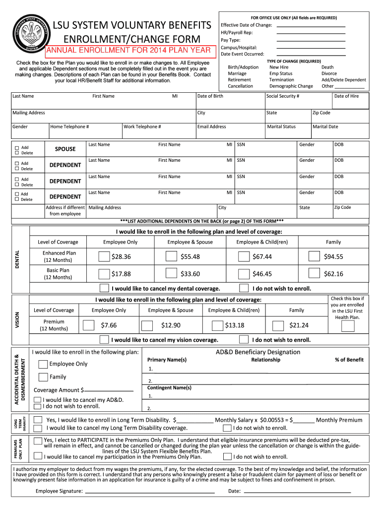 The LSU System Voluntary Benefits Enrollment Form plays a crucial role in the benefits enrollment process for employees of the Louisiana State University System. This form is essential for enrolling in or making changes to various voluntary benefits offered by LSU, including dental, vision, accidental death and dismemberment (AD&D), and long-term disability coverage. Completing the form accurately is vital for ensuring access to these benefits.