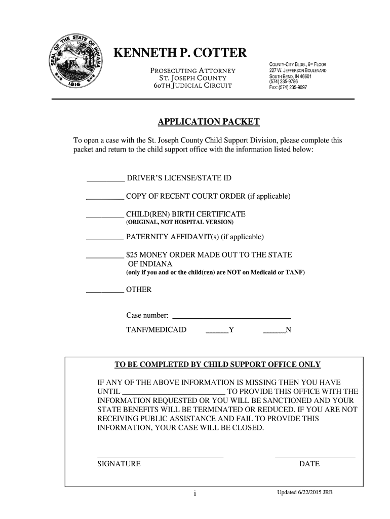Purpose and Benefits of the St. Joseph County Child Support Application Packet