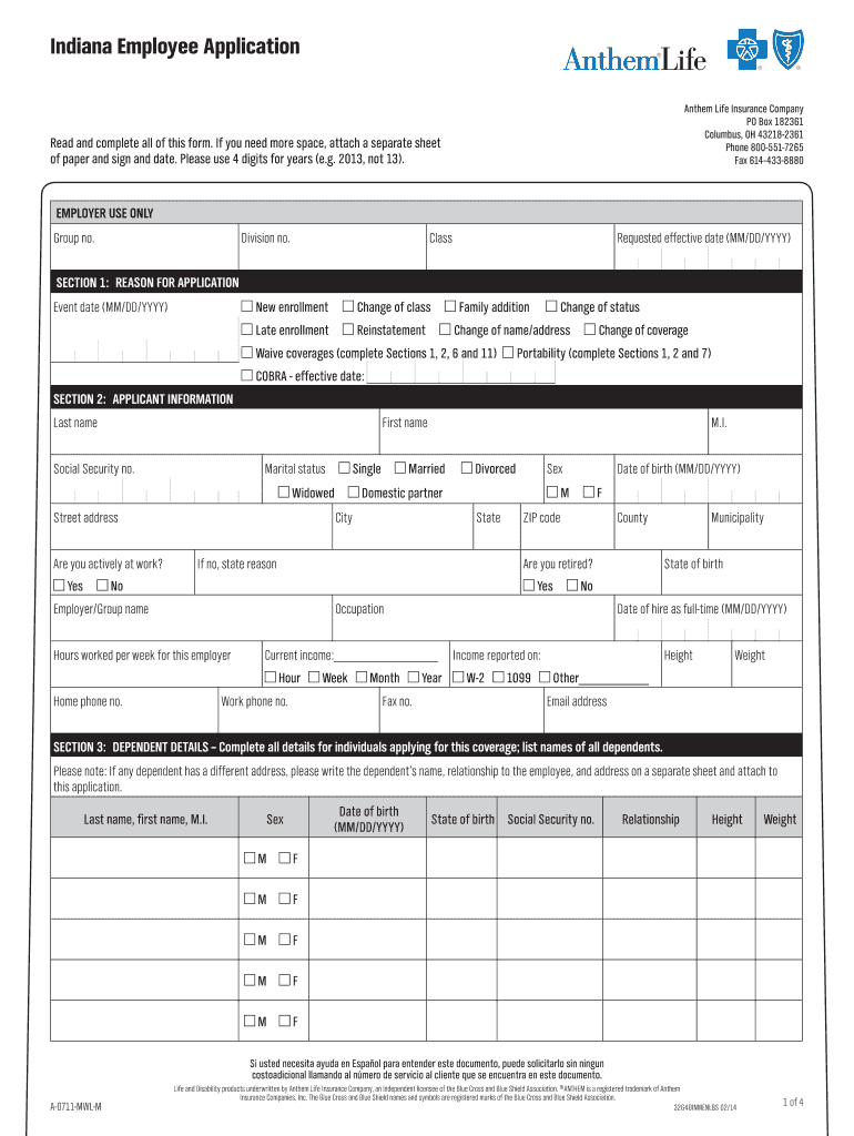 Employees of companies in Indiana, their spouses, or domestic partners who wish to apply for employment-related benefits are eligible to fill out the Indiana Employee Application.