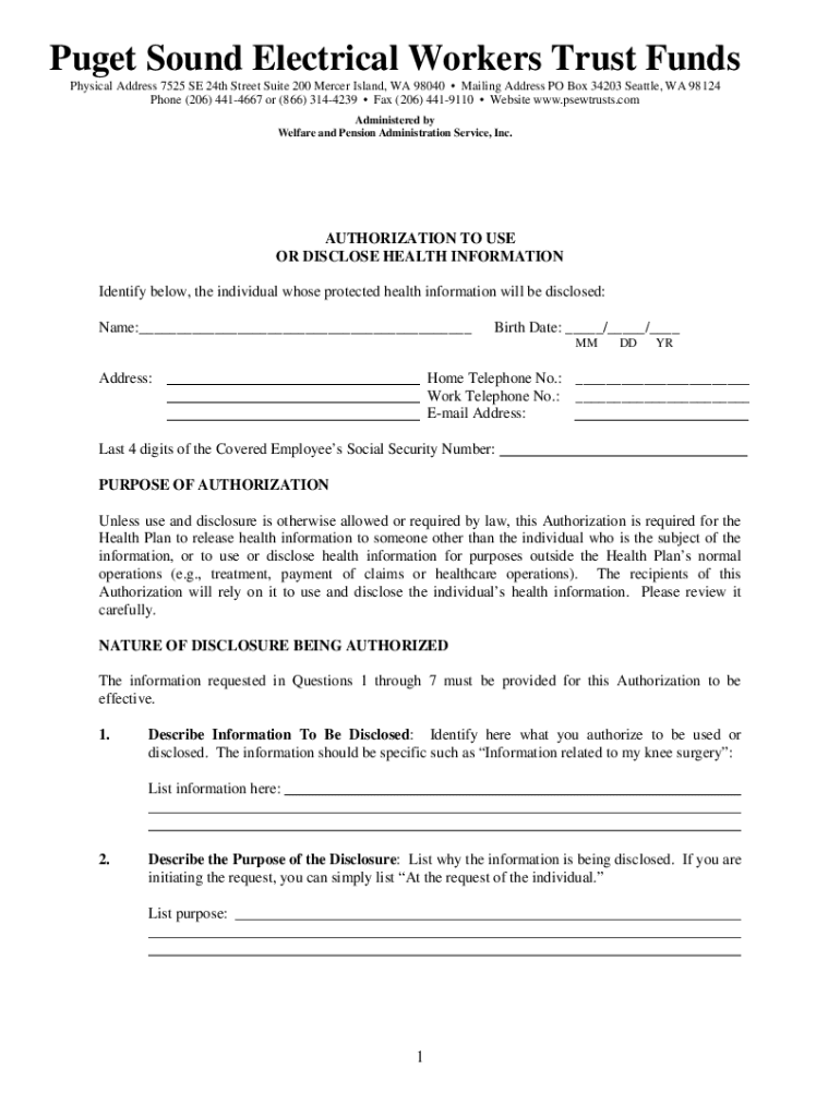 Get the free PUGET SOUND ELECTRICAL WORKERS HEALTH AND WELFARE TRUST