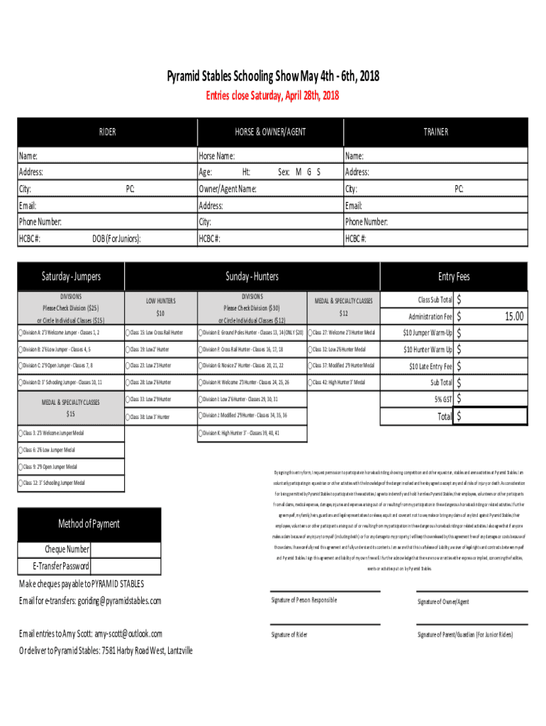 Get the free PDF May 4-6 Entry Form - Pyramid Stables