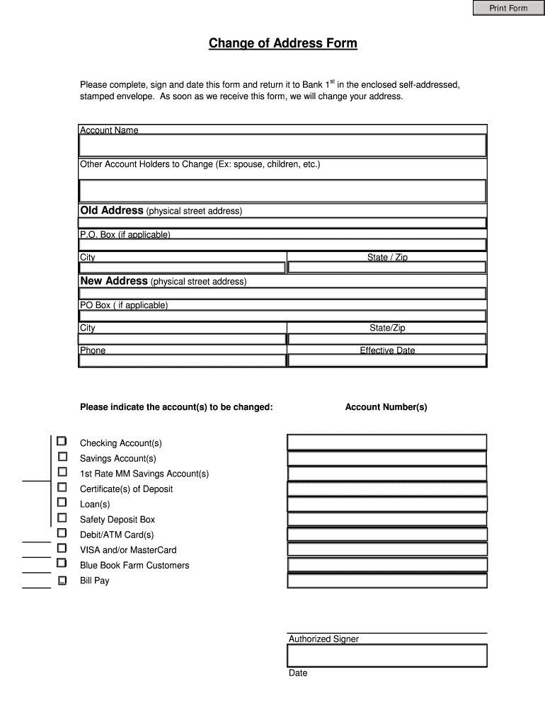 Any account holder of Bank 1 is eligible to complete this form to update their address information. You must have an active bank account with the institution.