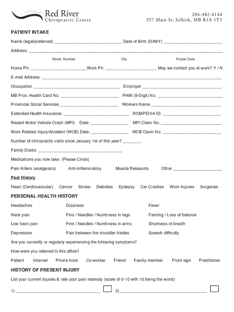 Get the free First Patient Intake Form - Red River Chiropractic Centre!