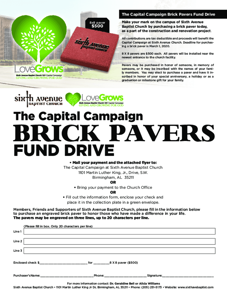 Get the free The Capital Campaign BRICK PAVERS - Sixth Avenue Baptist Church