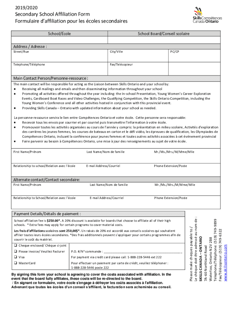 Get the free 2019/2020 Secondary School Affiliation Form Formulaire d ...