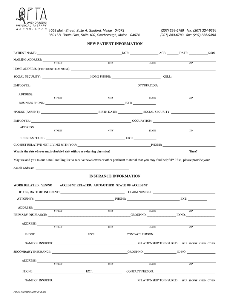 Get the free New Patient Information Form
