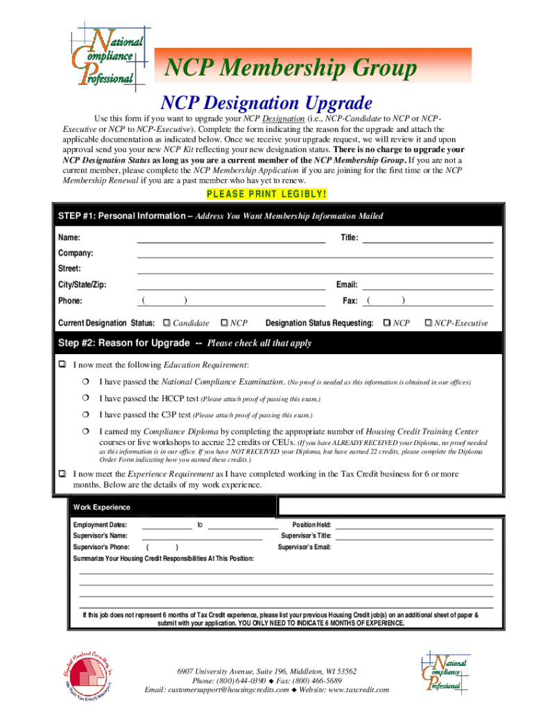 Use this form if you want to upgrade your NCP Designation (i.e., Noncandidate to NCP or Executive or NCP to Executive). Complete the form indicating the