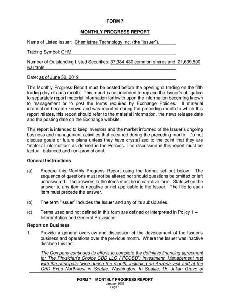 Name of Listed Issuer: Chemistry Technology Inc. (the Issuer).