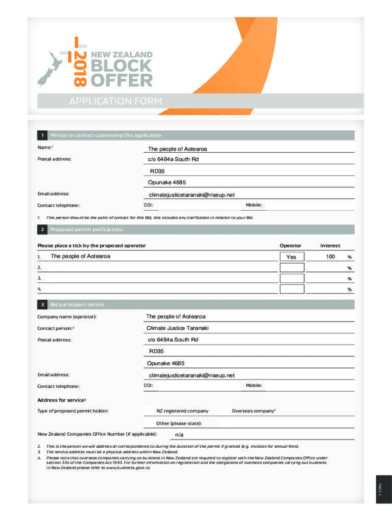 APPLICATION FORM1Person to contact concerning this applicationName:1The people of AotearoaPostal address:c/o 6484a South Rd
