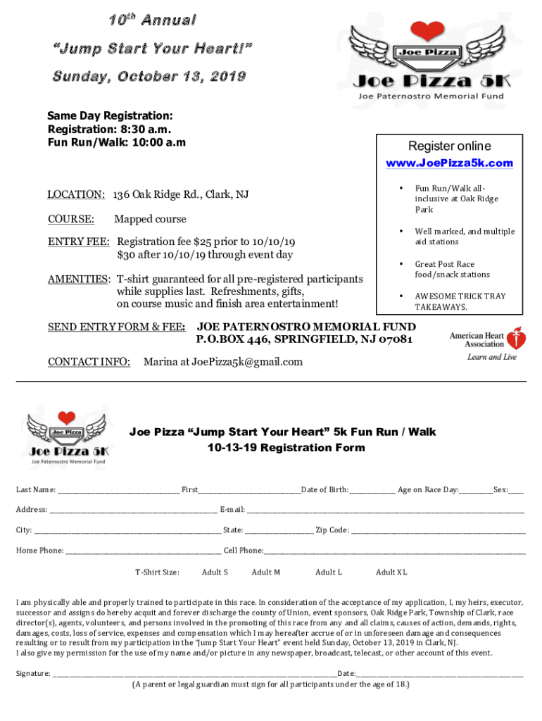 www.JoePizza5k.comLOCATION: 136 Oak Ridge Rd., Clark,