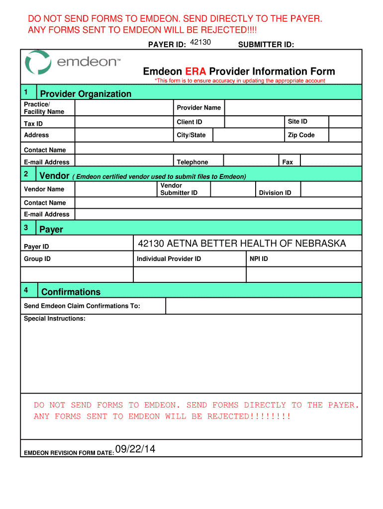 The Emdeon ERA Provider Information Form is a critical document for healthcare providers who need to enroll, change, or cancel electronic remittance advice (ERA) services with Aetna Better Health of Nebraska. It requires providers to provide detailed organizational information and perform specific actions related to ERA services.
