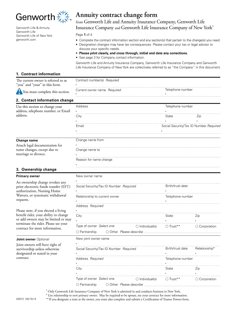 Annuity contract change form Gen worth Life & Annuity Gen worth Life of New York genworth.com from Gen worth Life and Annuity Insurance Company, Gen worth Life Insurance Company and Gen worth Life
