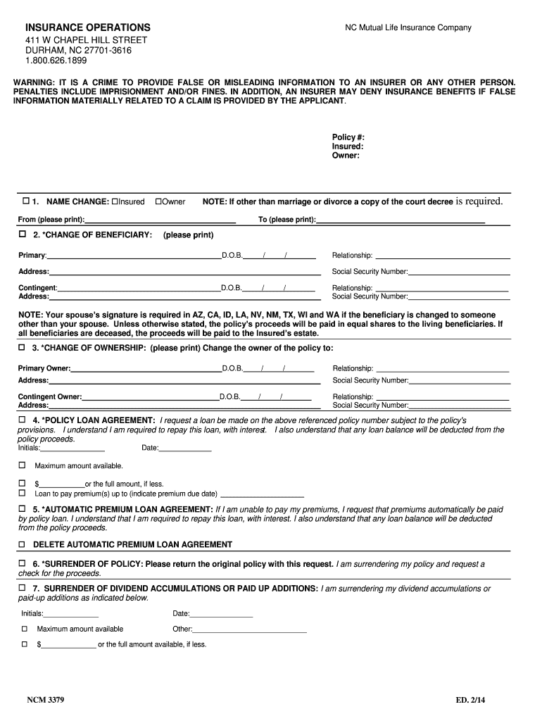 How to fill out the NC Life Policy Change