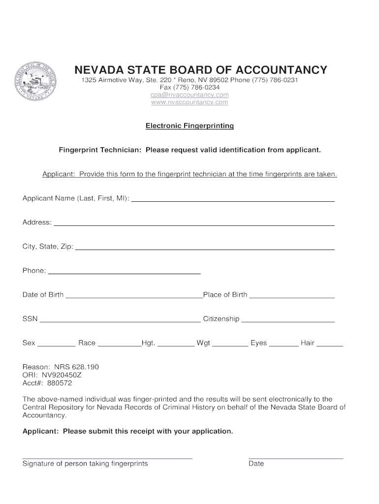 Get the free Nevada Accountancy Fingerprinting Form