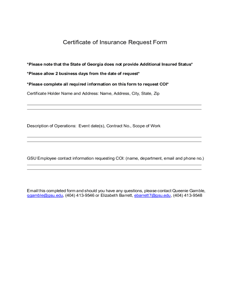 Certificate of Insurance Request Form×Please note that the State of Georgia does not provide Additional Insured Status*