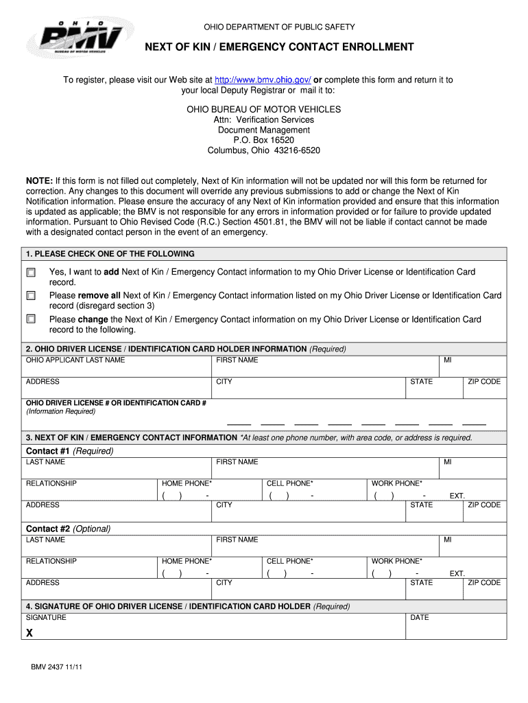 Any Ohio resident holding a Driver License or Identification Card can use this form to update their emergency contact information.