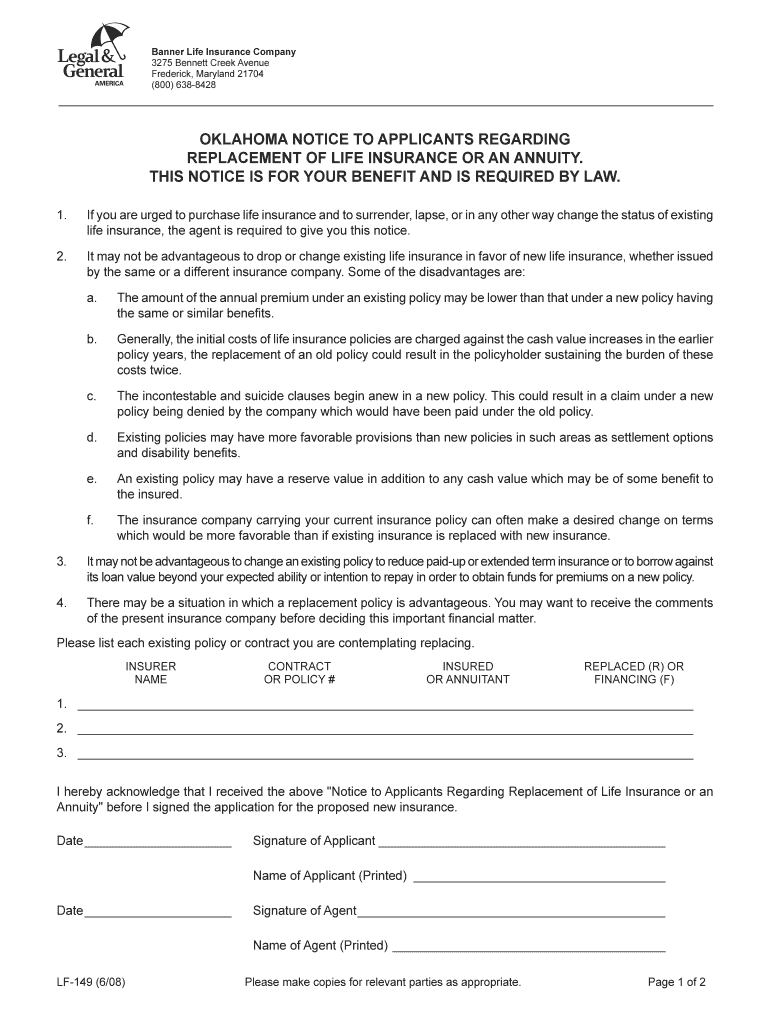 Who Needs the Oklahoma Life Insurance Replacement Notice?