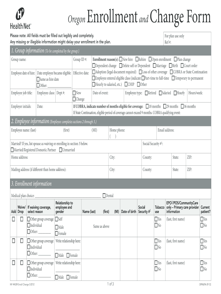 Employees in Oregon who wish to enroll in or change their health insurance coverage through Health Net are eligible to use this form. Dependents of these employees may also need to provide their information.