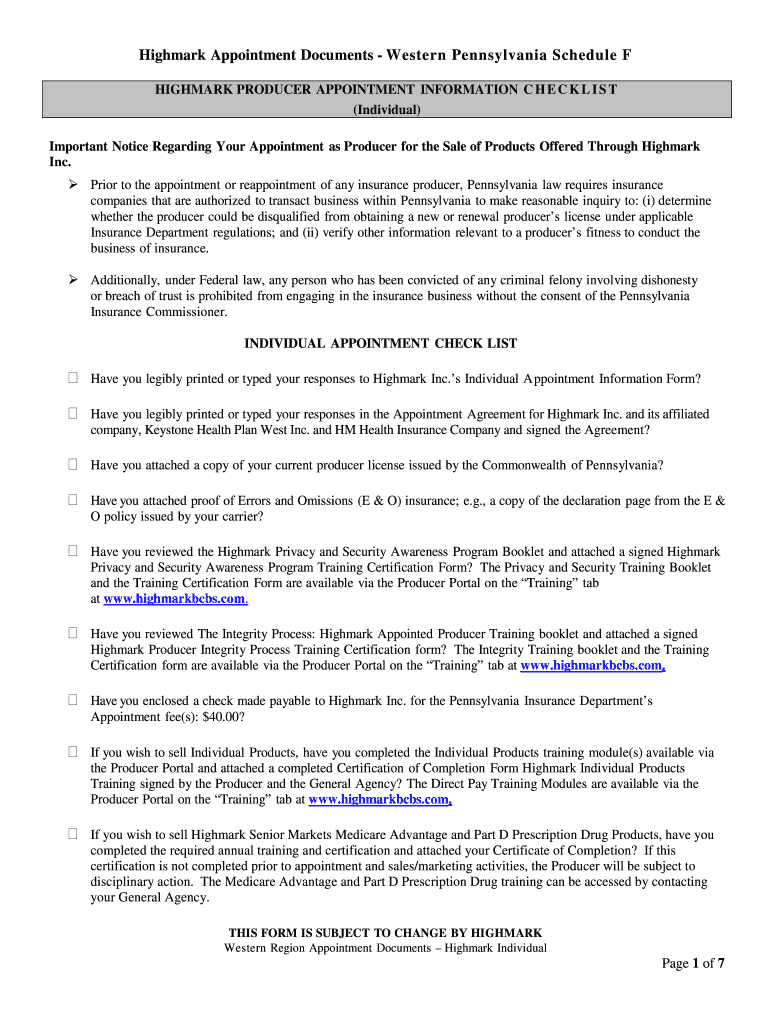 To use the Highmark Producer Appointment Form, you must be a licensed insurance producer in Pennsylvania seeking to sell Highmark products.