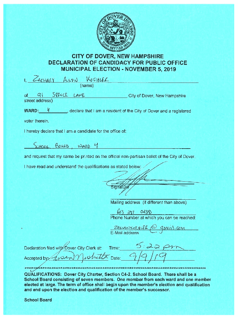 DECLARATION OF CANDIDACY FOR PUBLIC OFFICE