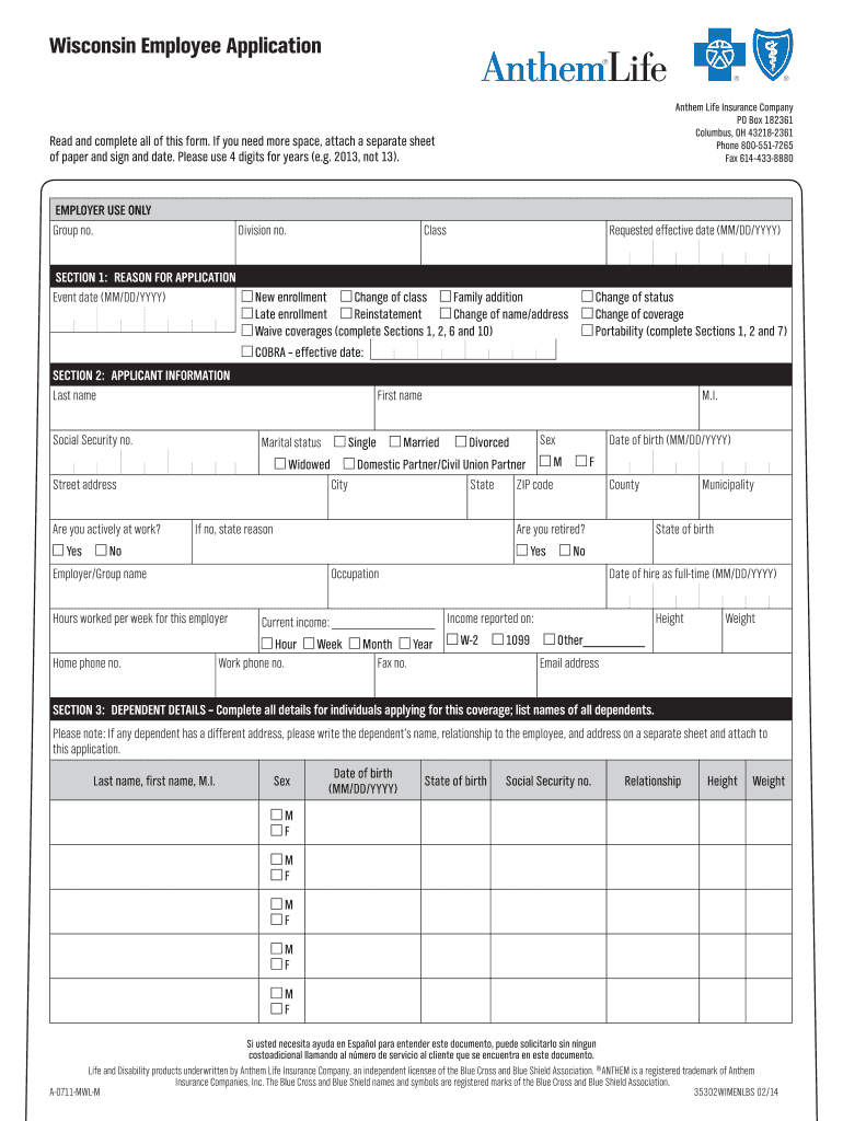 Individuals seeking employment in Wisconsin and employees wanting to apply for or modify their insurance benefits through Anthem Life Insurance Company are eligible to complete this form.