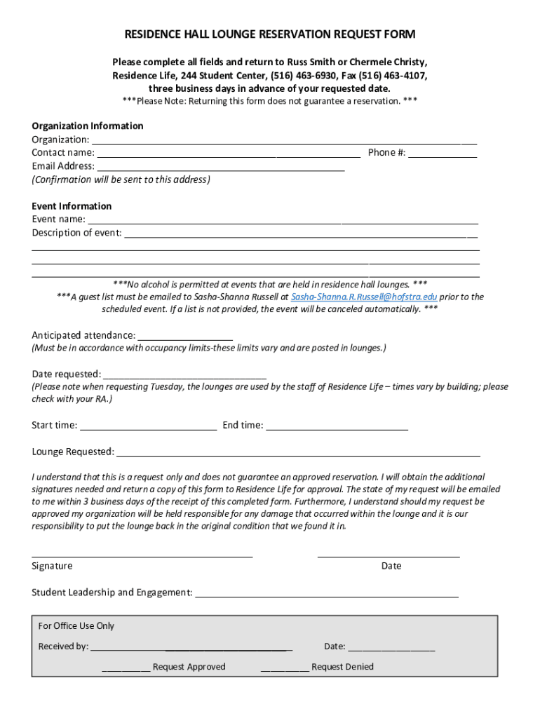 Fill out your residence hall lounge reservation online with pdfFiller!