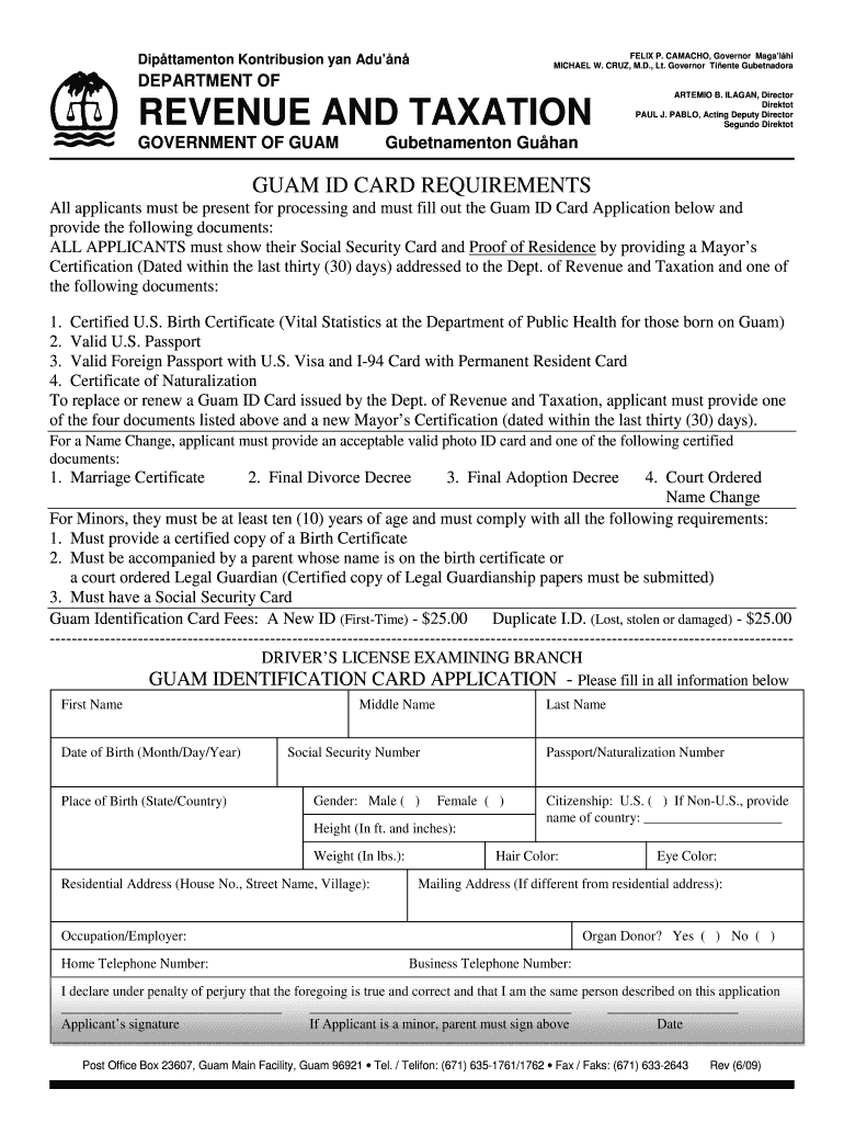 The Guam ID Card Application is a government form used by residents of Guam to apply for or renew their Guam identification card.